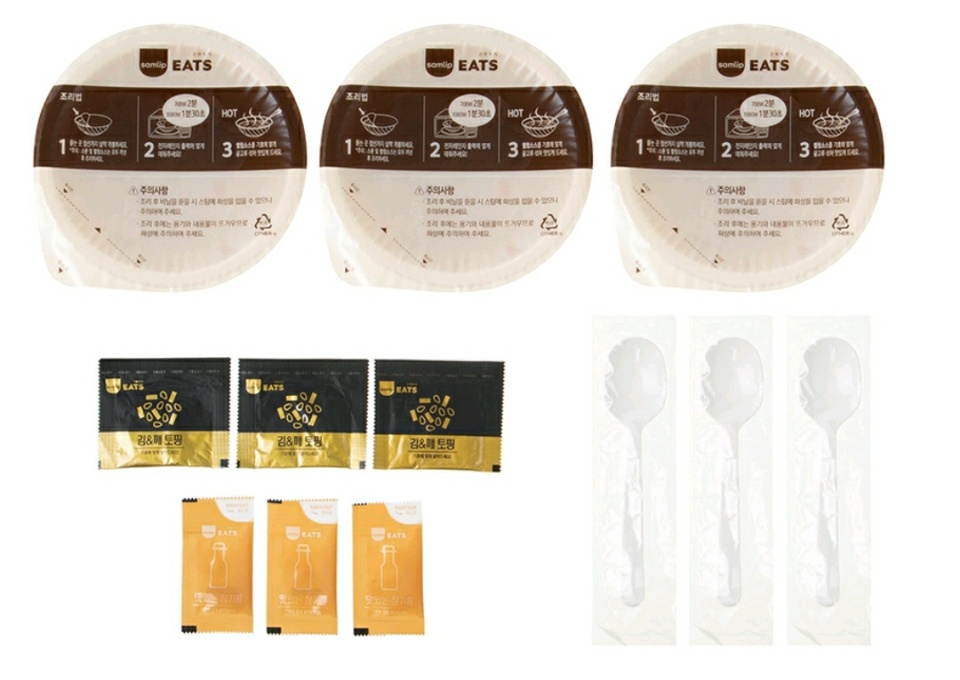 이제 동봉된 참기름과 김&깨 토핑을 곁들여 먹으면 됩니다.