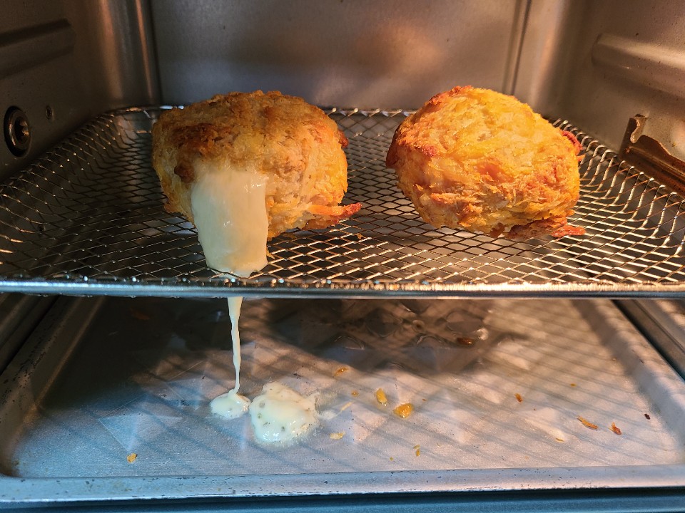 돈까스 속 치즈가 얼마나 많은지, 조리 중 치즈가 넘쳐버렸어요. 그래도 너무 맛있어 보이죠?